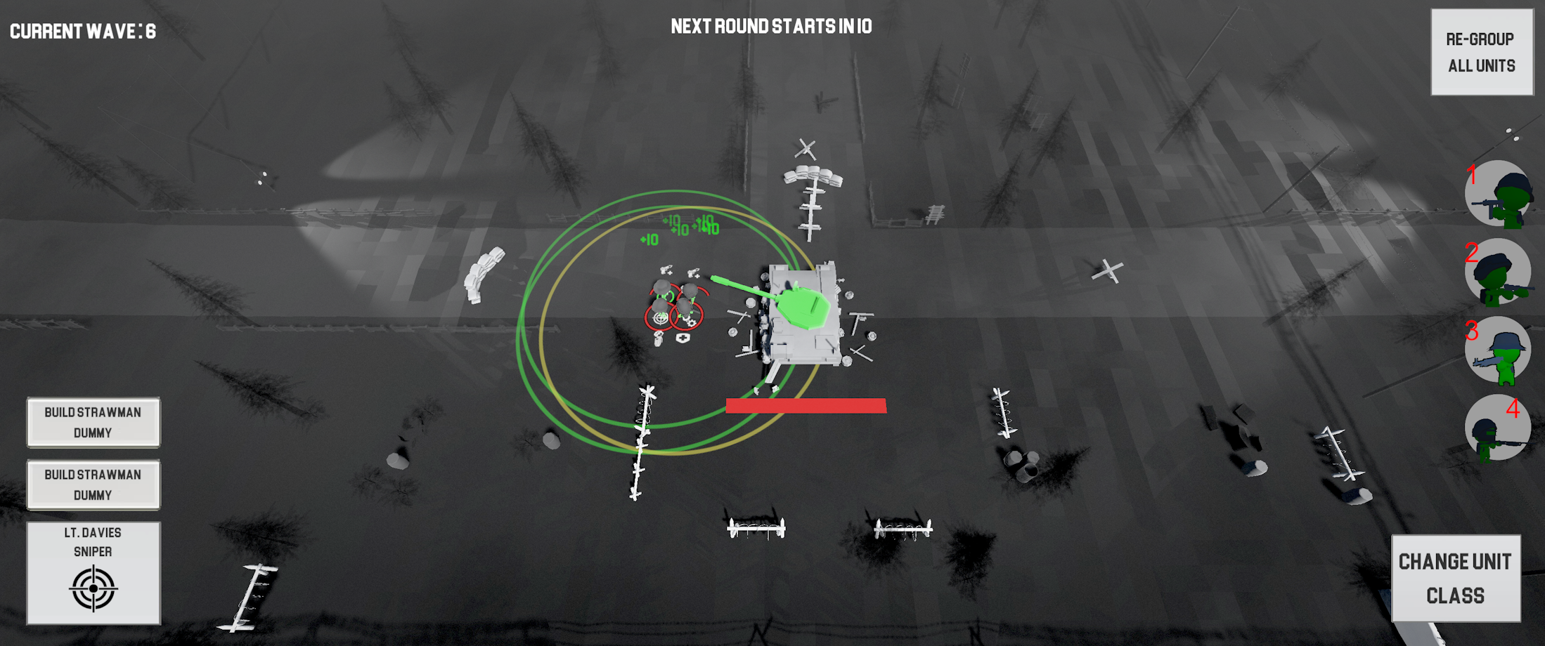 You can change any unit's class at any time to support your play style and strategy. Want to set up sandbags all around the tank? Make them all grunts and Demolitionists! Want to spawn a bunch of medical tents and tank traps? Want to place traps and bombs to take the fight to the enemy? That's an option! You choose!