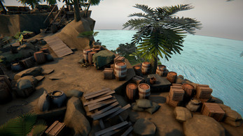 Inside this smugglers cove beach area scene, you'll find a variety of assets, from crates, barrels, chains and ropes, docks and walkways, a wooden row boat, sacks and tarps, oars and planks and plenty of foliage such as trees, plants, seashells and starfish, pebbles and rocks and a huge hilltop and much more!