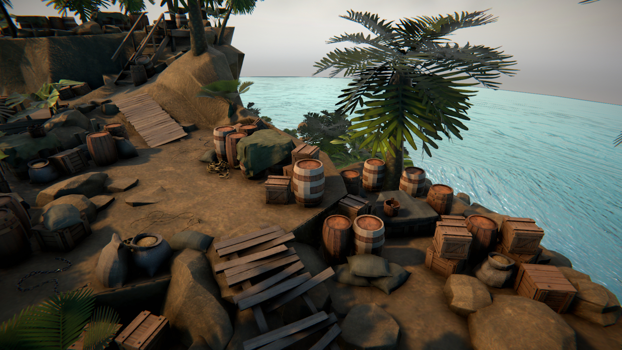 - πͺ¨ Environment β Rocks, cliff formations, seashells, planks, crates, barrels, and props.